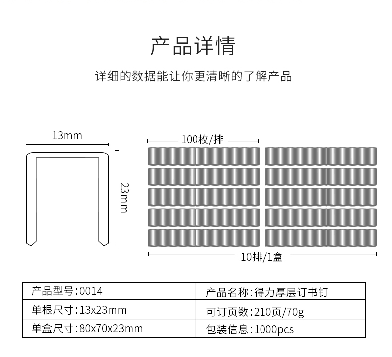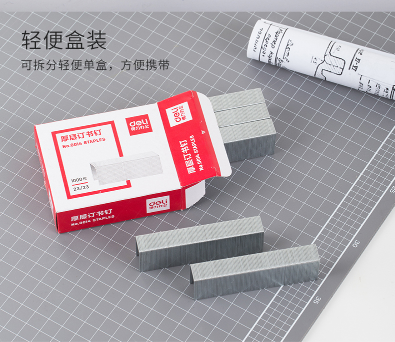 得力0014厚層訂書釘23/23(1000枚/盒)