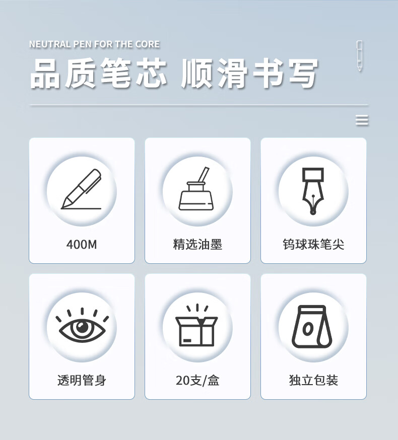 晨光中性筆芯MG6102藍色0.5 20支/盒
