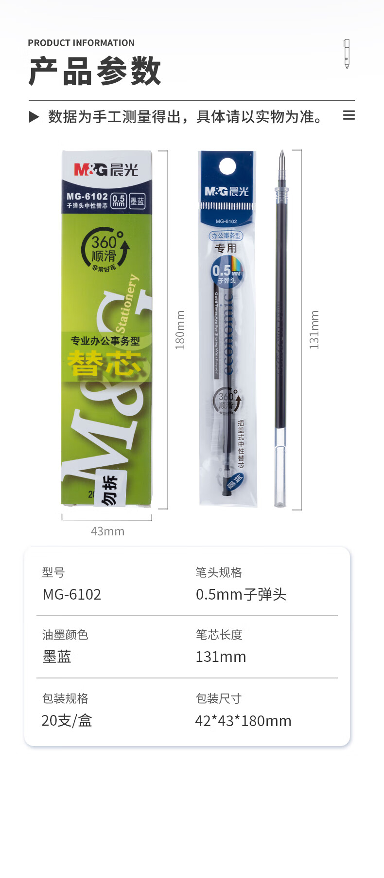 晨光中性替芯MG6102墨藍0.5*20
