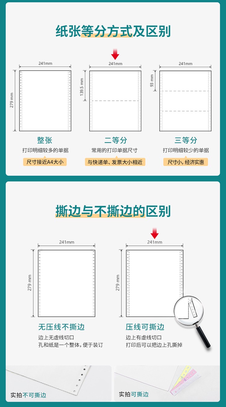 匯東電腦打印紙241-3-3/1彩色撕邊