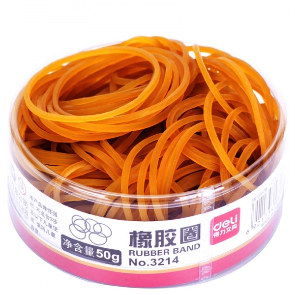 得力3214橡膠圈(黃)(50g/筒)