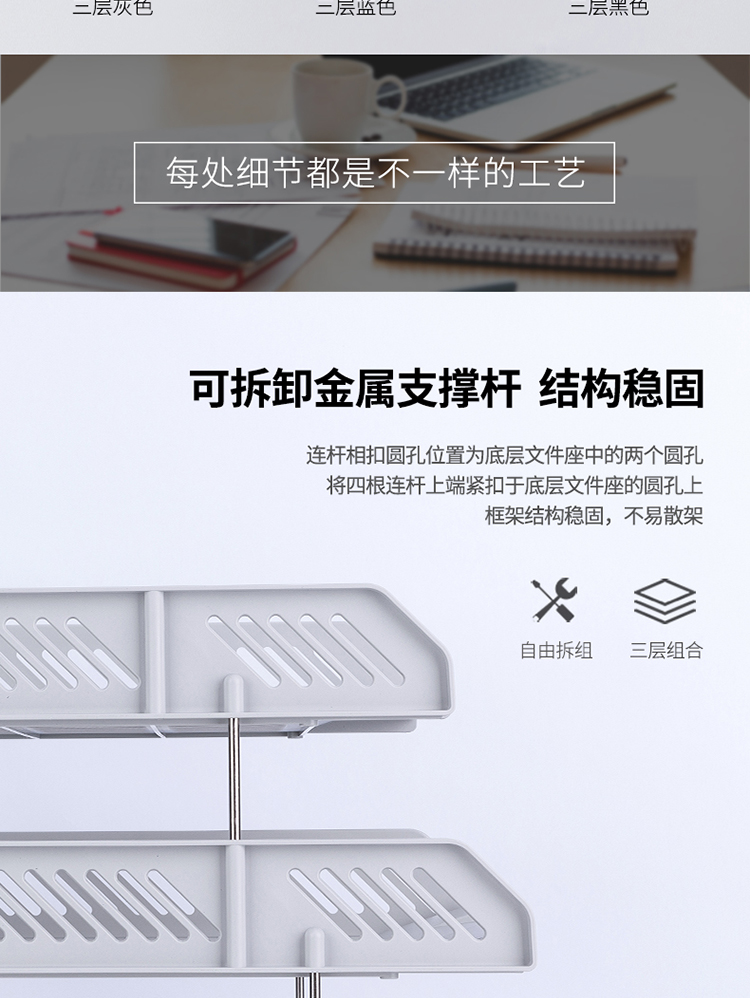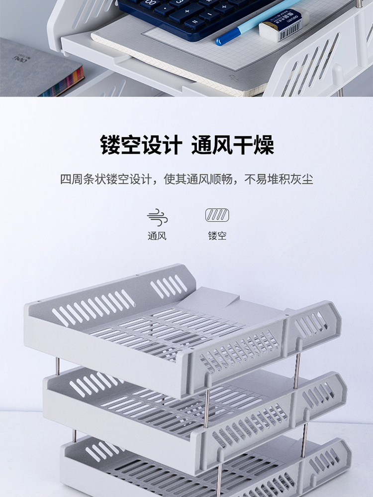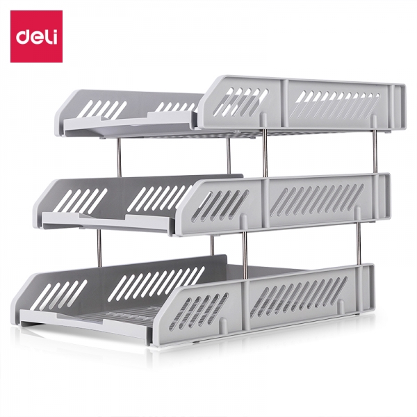 得力9209三層塑料文件盤(淺灰)*6