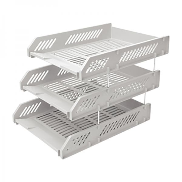 齊心B2060超省錢塑料三層文件盤灰*5