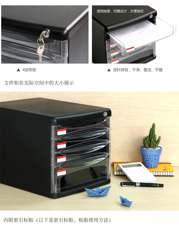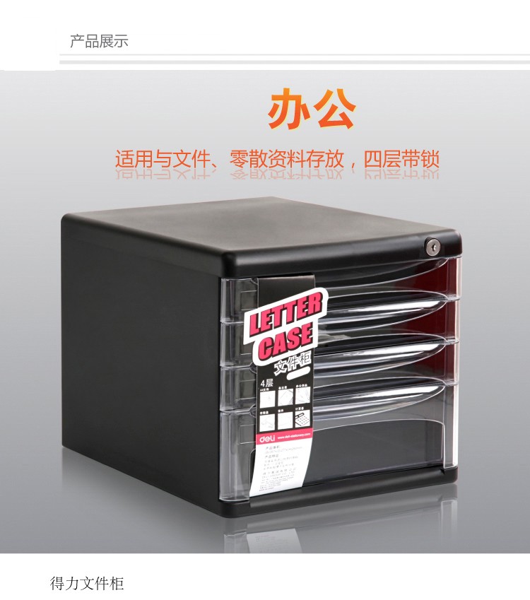 得力9772四層硬塑文件柜(黑)