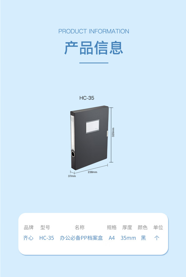 齊心A1248超省錢PP檔案盒A4 35mm黑*18