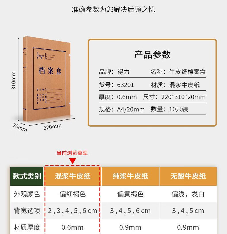 得力63201牛皮紙檔案盒310*220*20mm(黃)(10個/包)