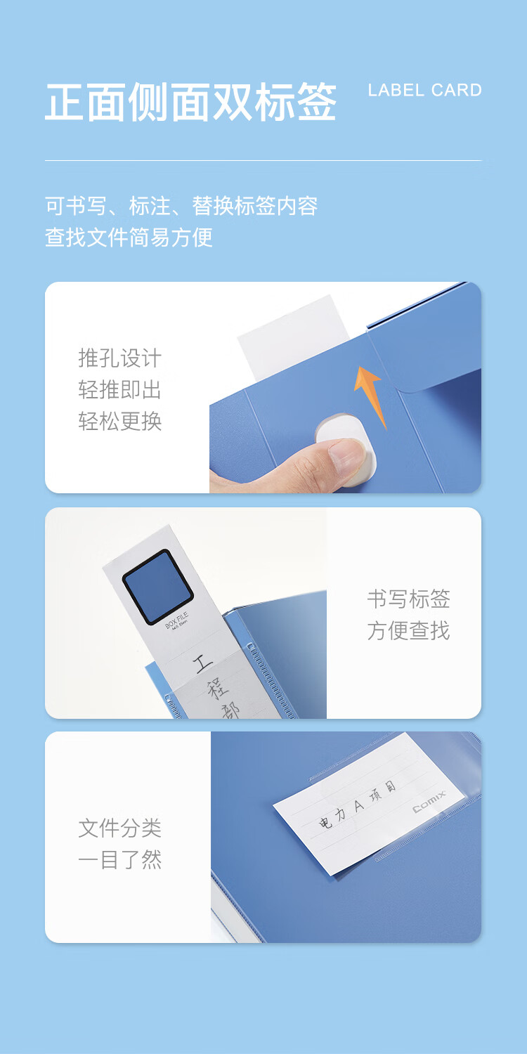 齊心A1248超省錢PP檔案盒A4 35mm藍*18
