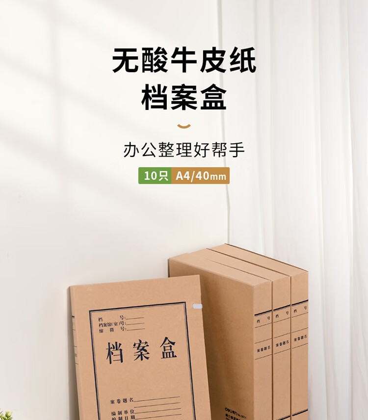 得力5611無酸牛皮紙檔案盒40mm(棕黃)(10個/包)