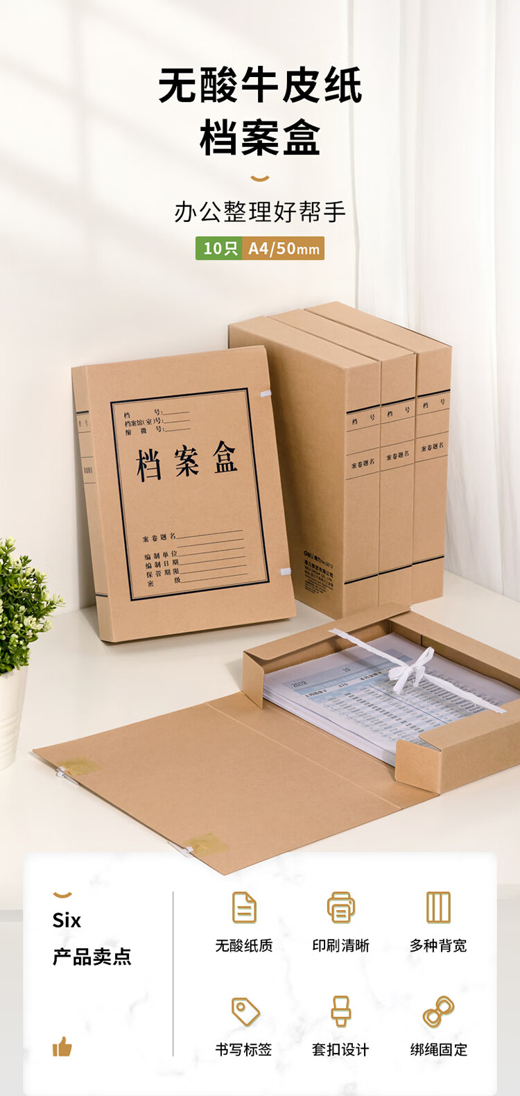 得力5620牛皮紙檔案盒6cm*10