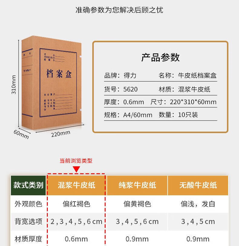 得力5620牛皮紙檔案盒6cm*10