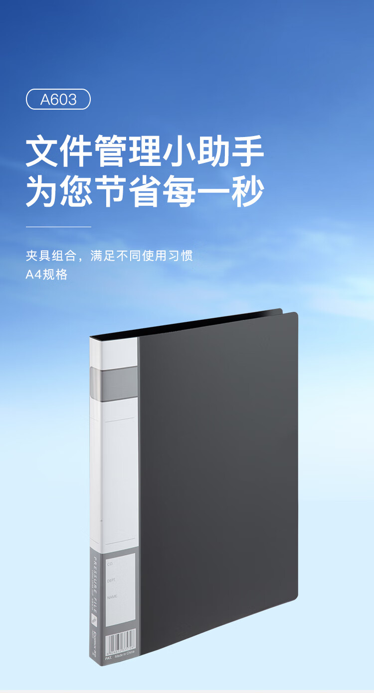 齊心A602單強力文件夾 黑*20