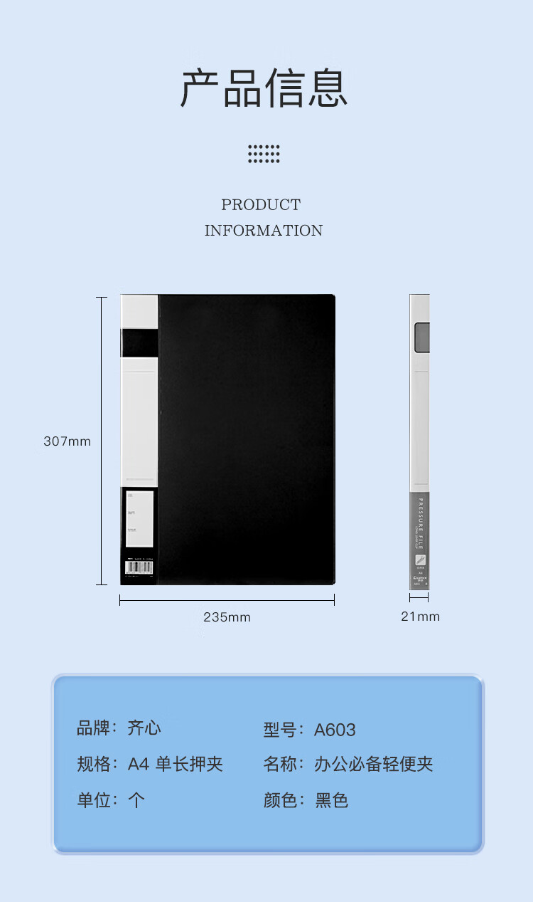 齊心A604長押夾+板夾文件夾 藍*20