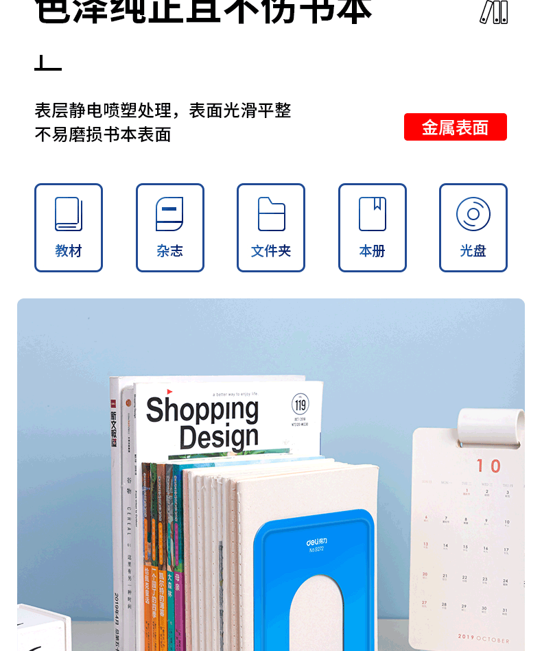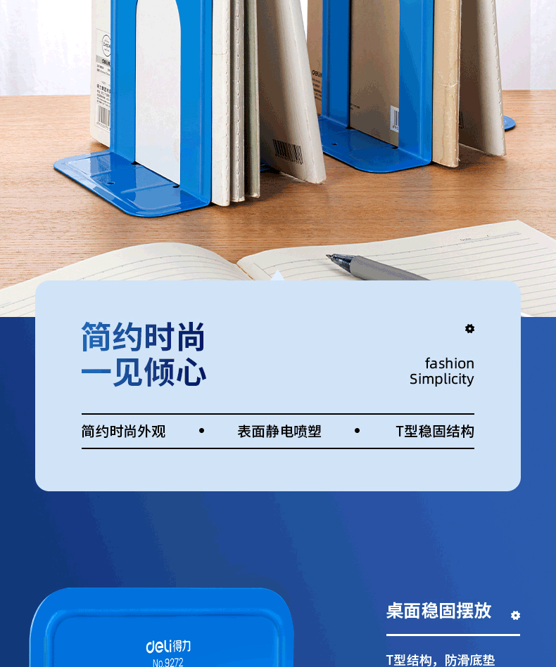 得力9270鐵書立8寸(藍)(2片/付)