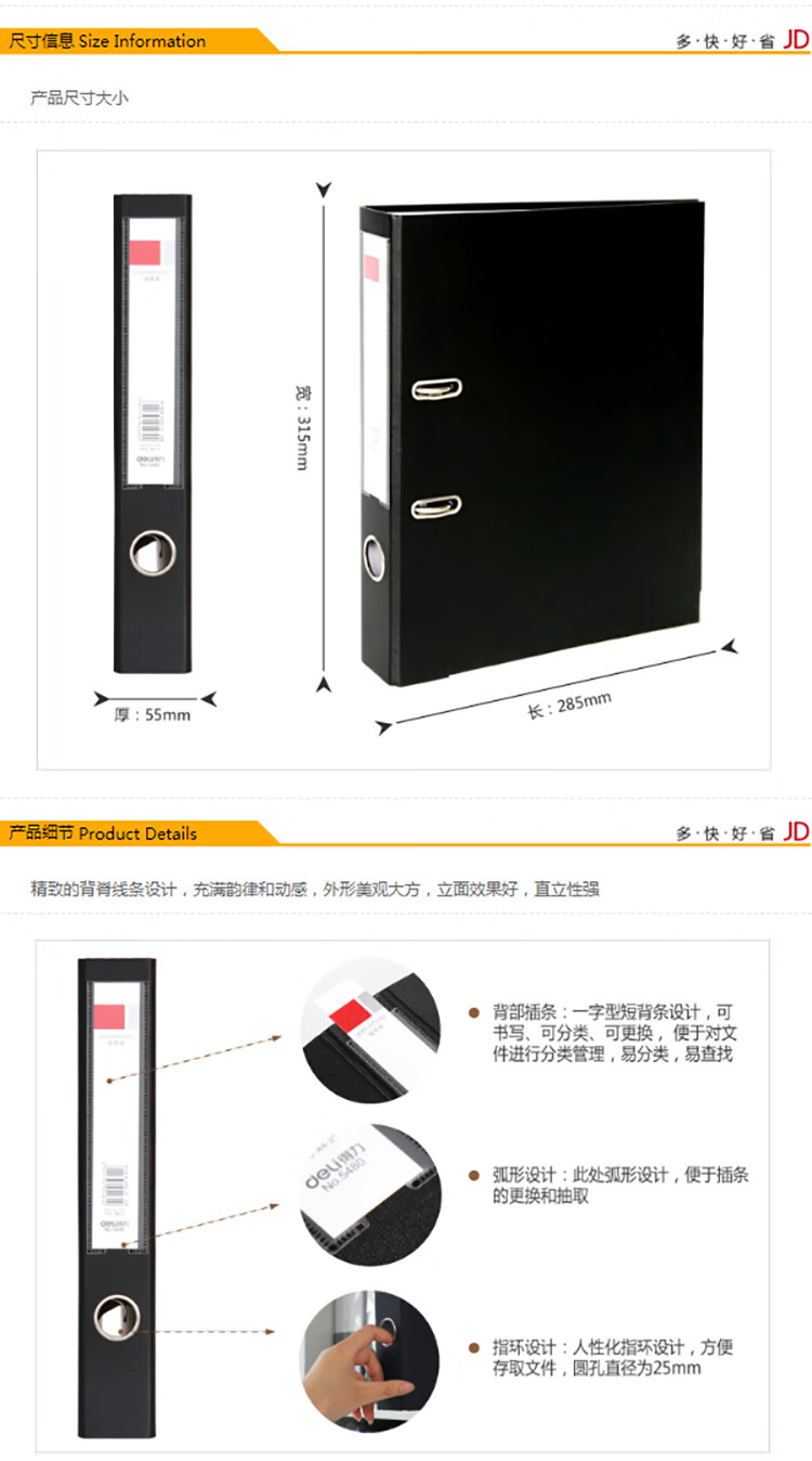 得力5481經濟型快勞夾(黑)*6