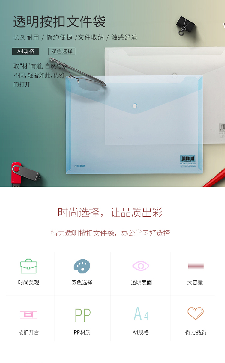 得力5501 A4按扣透明文件袋*10