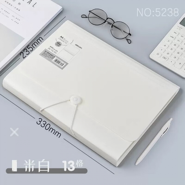 得力5236繩扣式風琴包13格(灰)