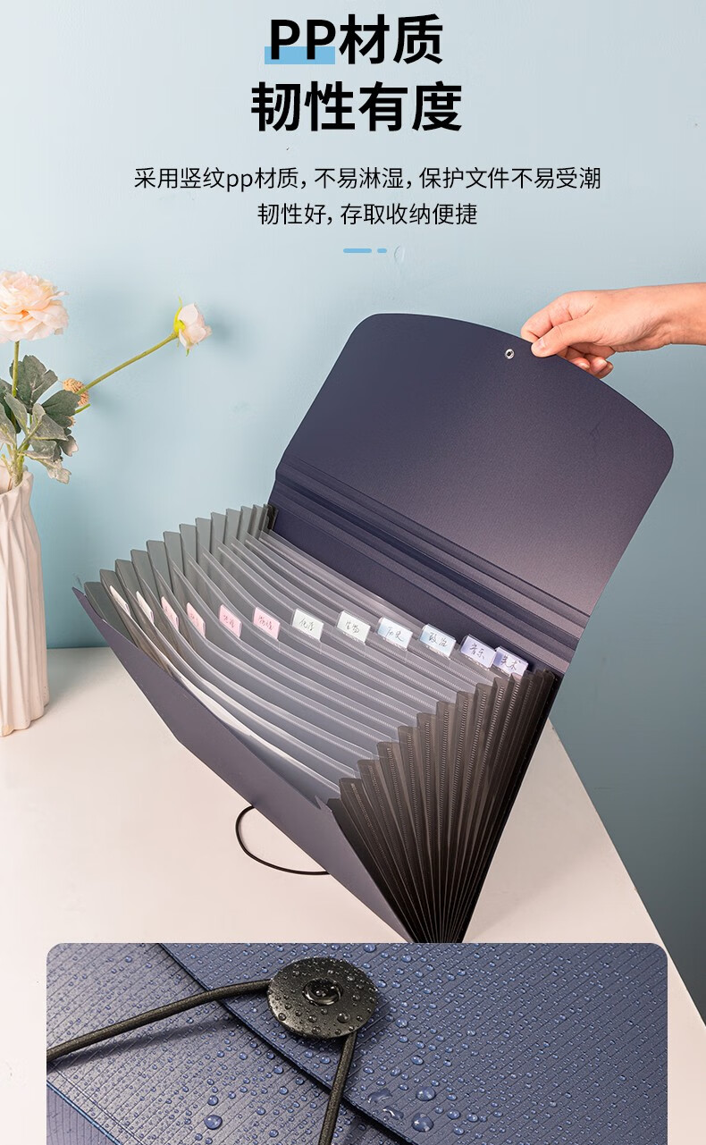 得力63951立式風琴包13格A4文件夾橫式(深藍)