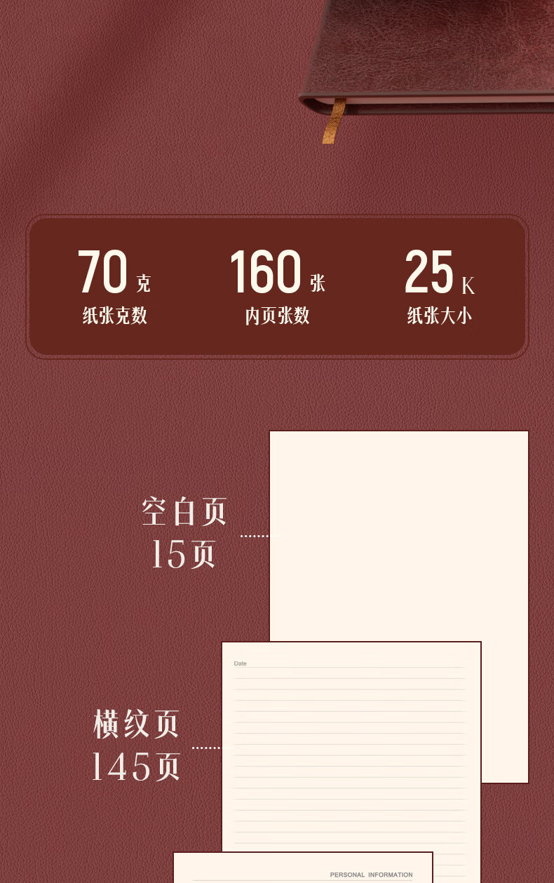 得力3186商務辦公筆記本(棕色)25K 160頁