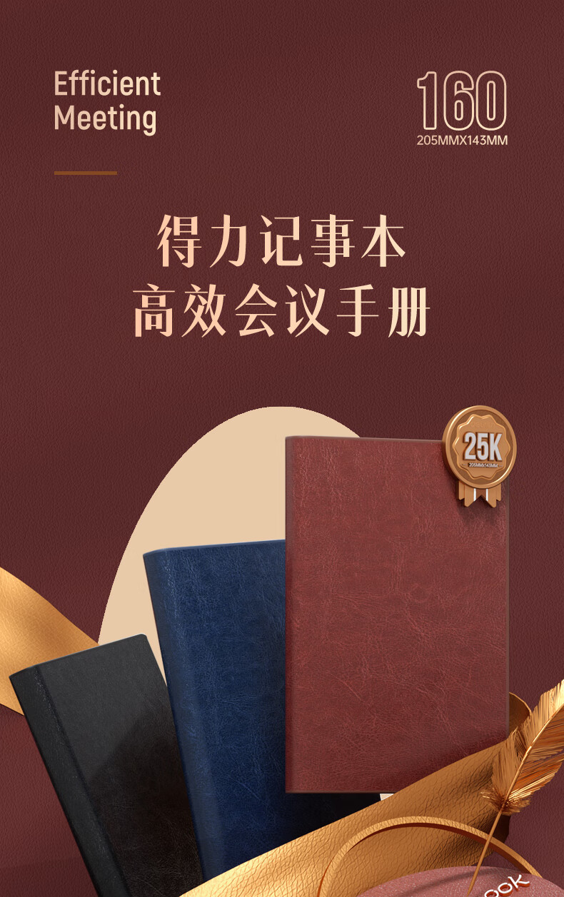得力3186商務辦公筆記本(棕色)25K 160頁