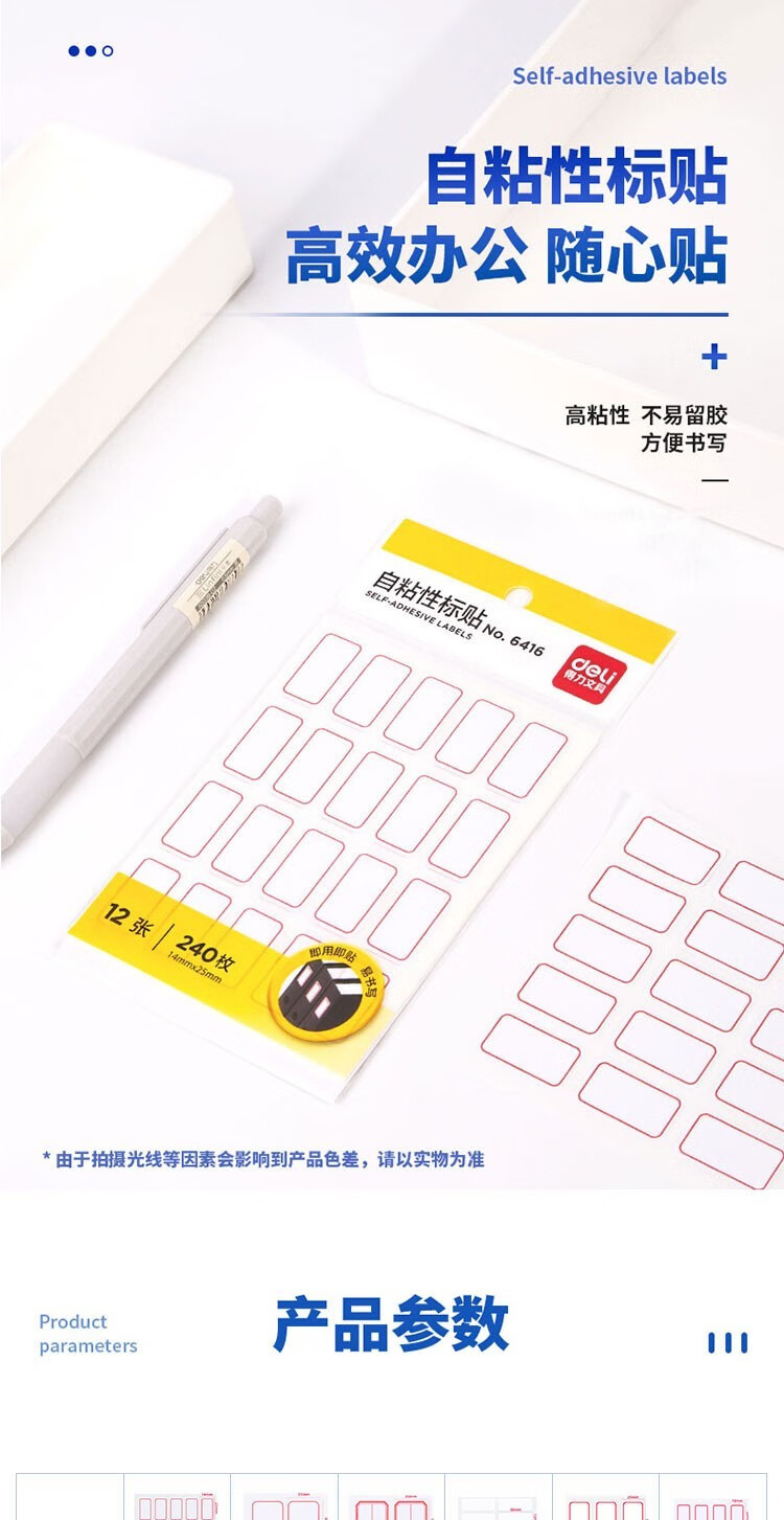 得力7193自粘性標貼(白)24*27mm*12枚*12張