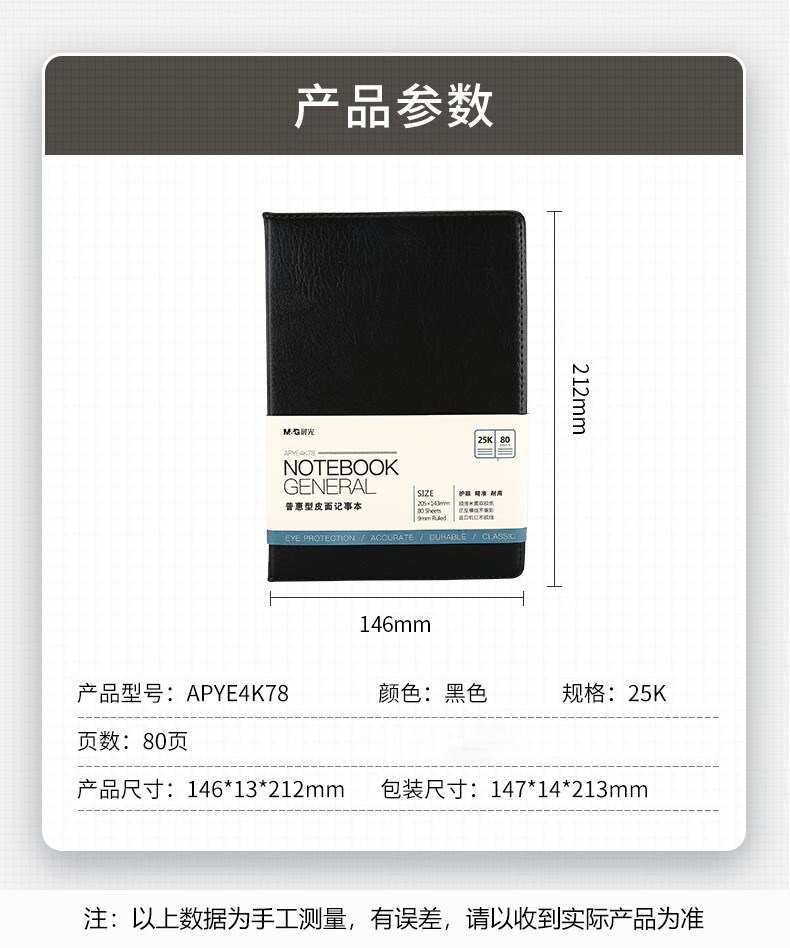 晨光18k普惠皮面記事本160頁黑APY1DK78