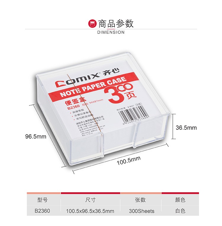 齊心B2360簡便易取便簽盒91*87MM*24
