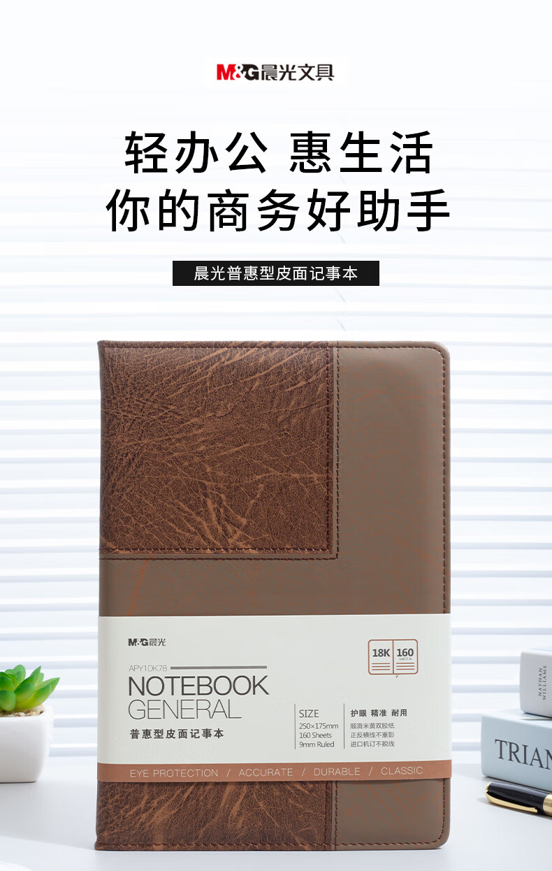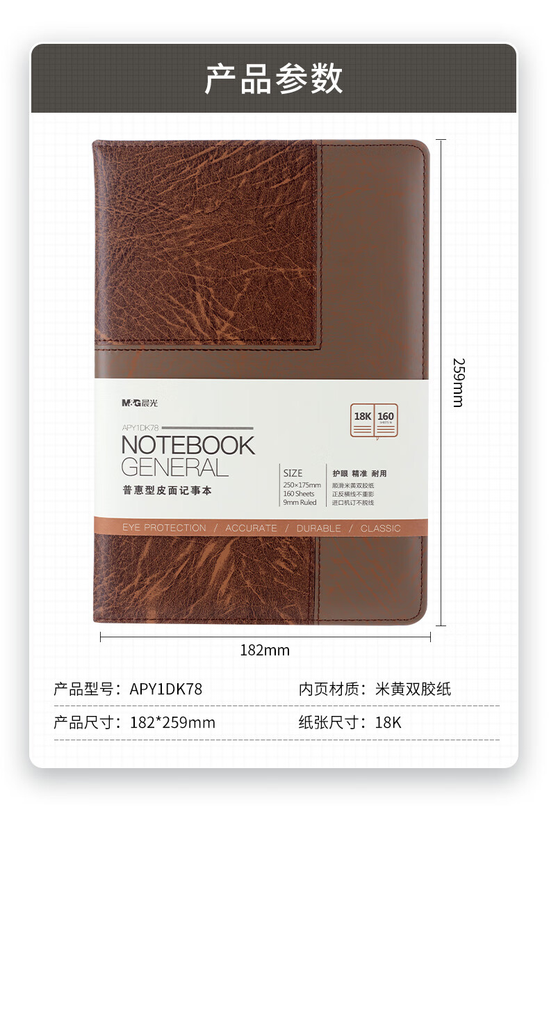 晨光普惠型皮面記事本18K160頁棕APY1DK78