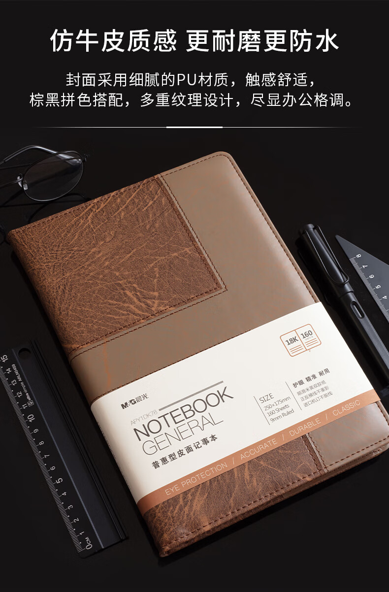 晨光18k普惠皮面記事本160頁黑APY1DK78