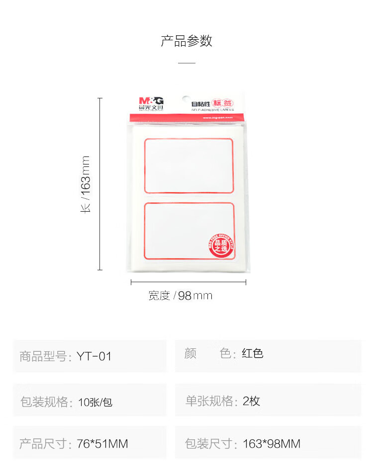 C晨光2枚X10自粘性標簽(紅)YT-01