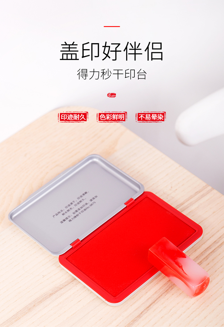 得力9893方形鐵蓋秒干印臺143x87mm(紅)