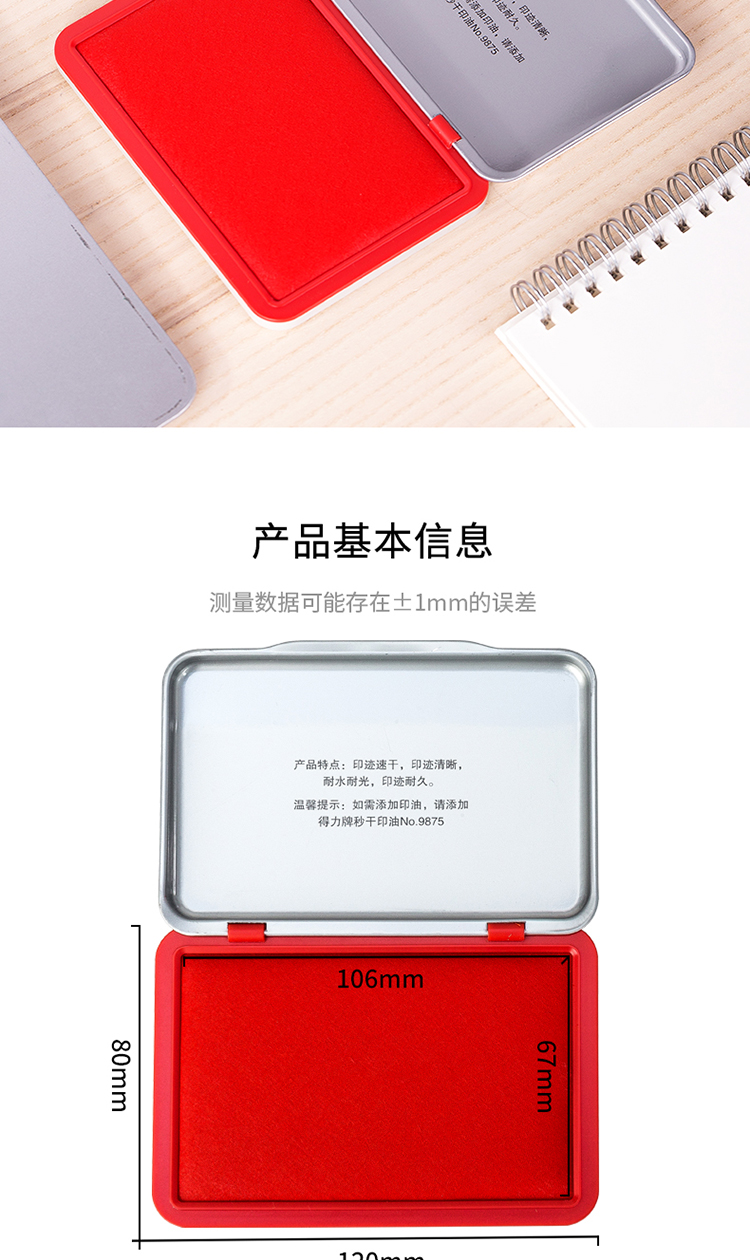 得力9864快干印臺137*88*25mm紅*12