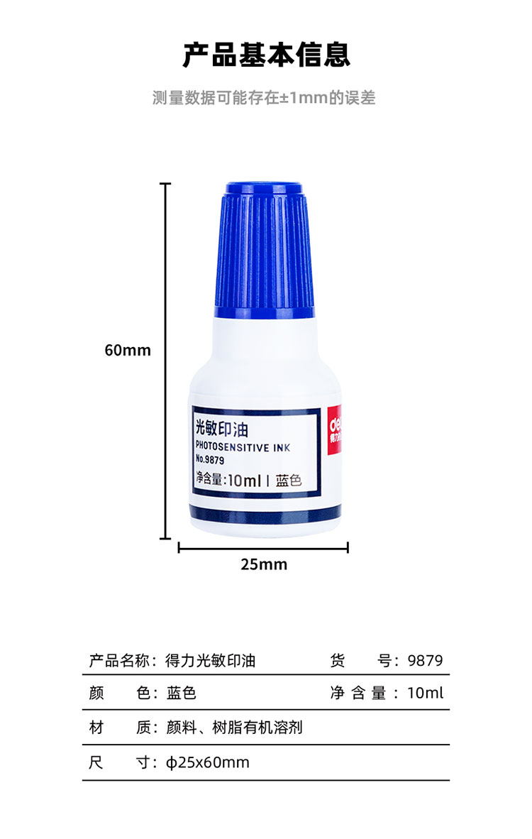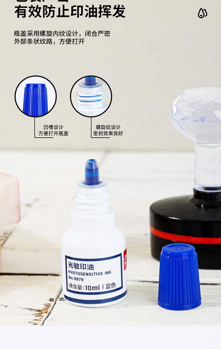 得力9879光敏印油10ml藍*20