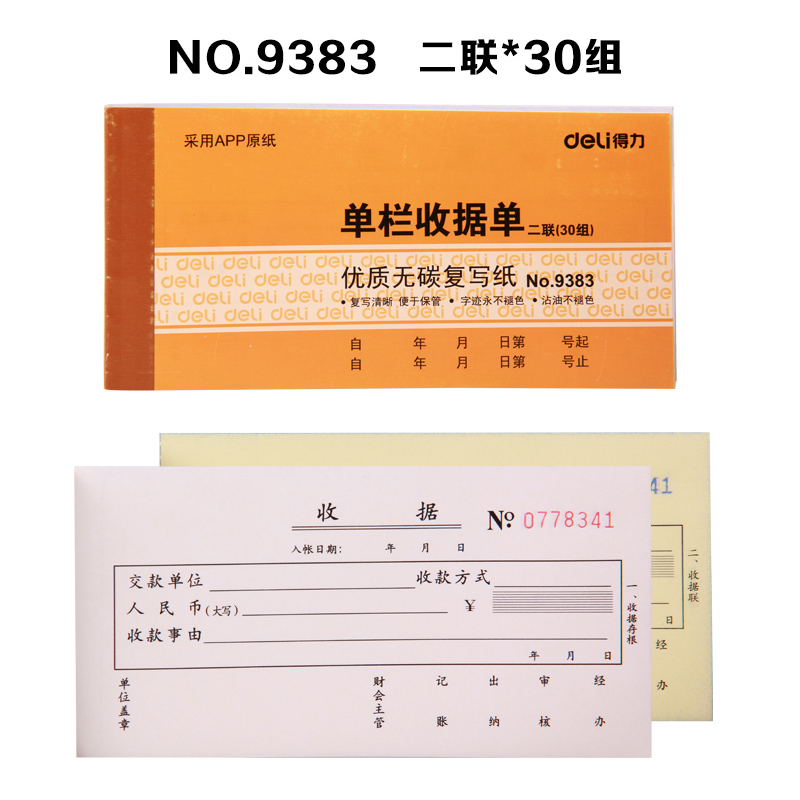 得力9383二聯(lián)單欄收據(jù) 無碳復(fù)寫87*175mm