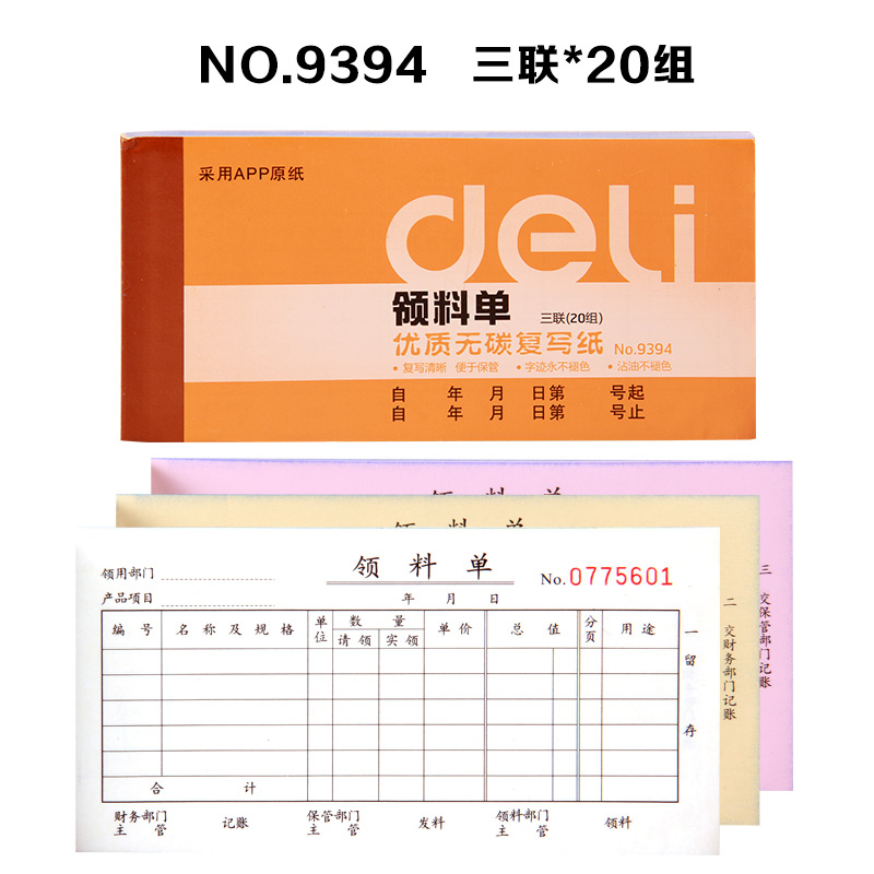 得力9386三聯(lián)送(銷)貨單據(jù)(黃)87*175mm*10