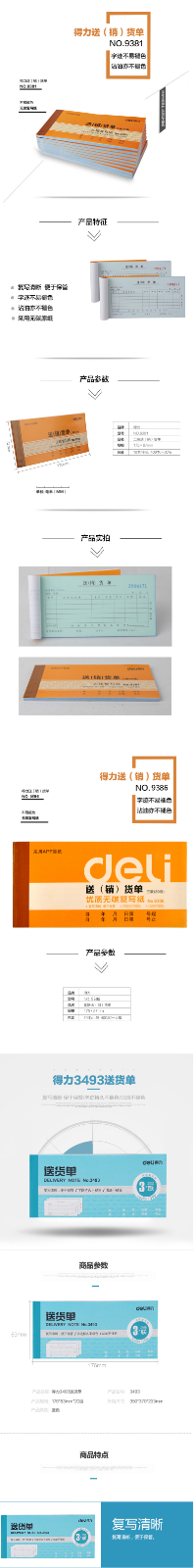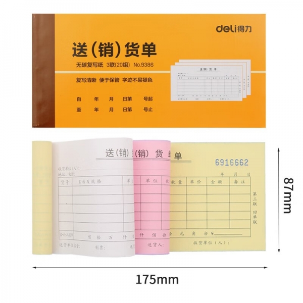 得力9386三聯(lián)送(銷)貨單據(jù)(黃)87*175mm*10