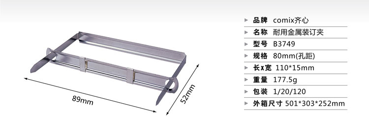 齊心B3749金屬裝訂夾 孔距80mm