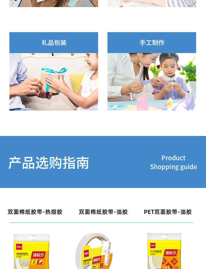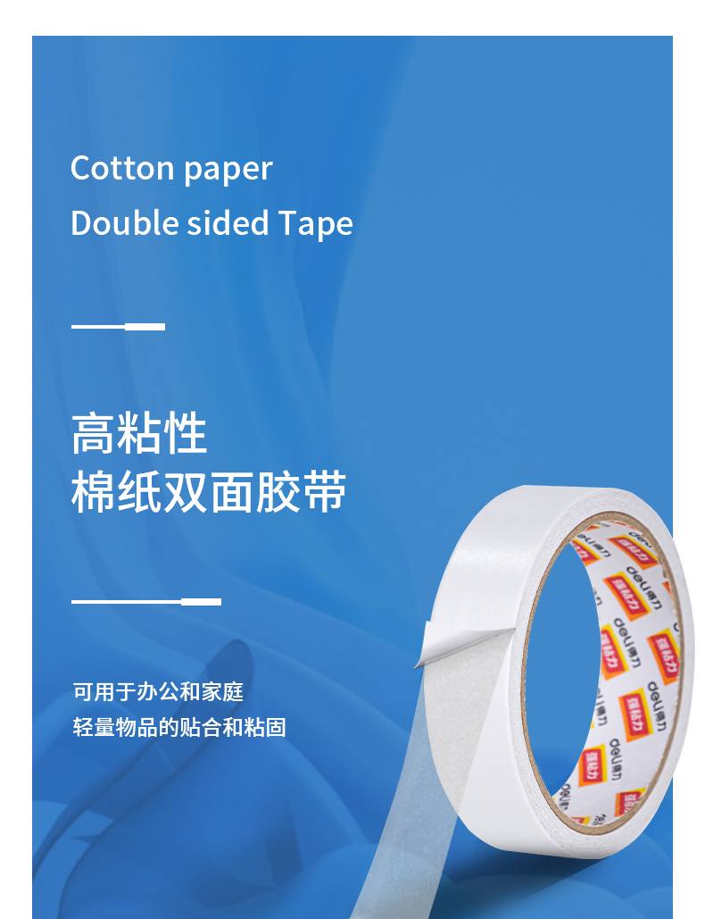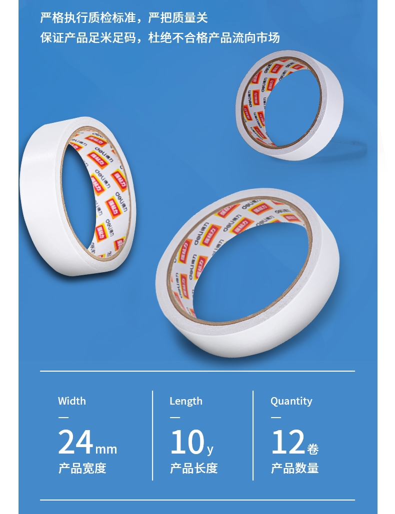 得力30403棉紙雙面膠帶24mm*10y*80um*12卷/袋