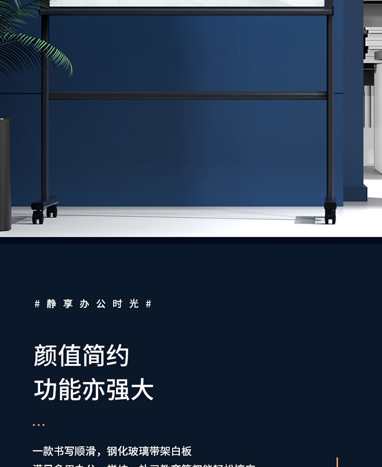 得力8737_H型架磁性玻璃白板900*1500mm(黑色)