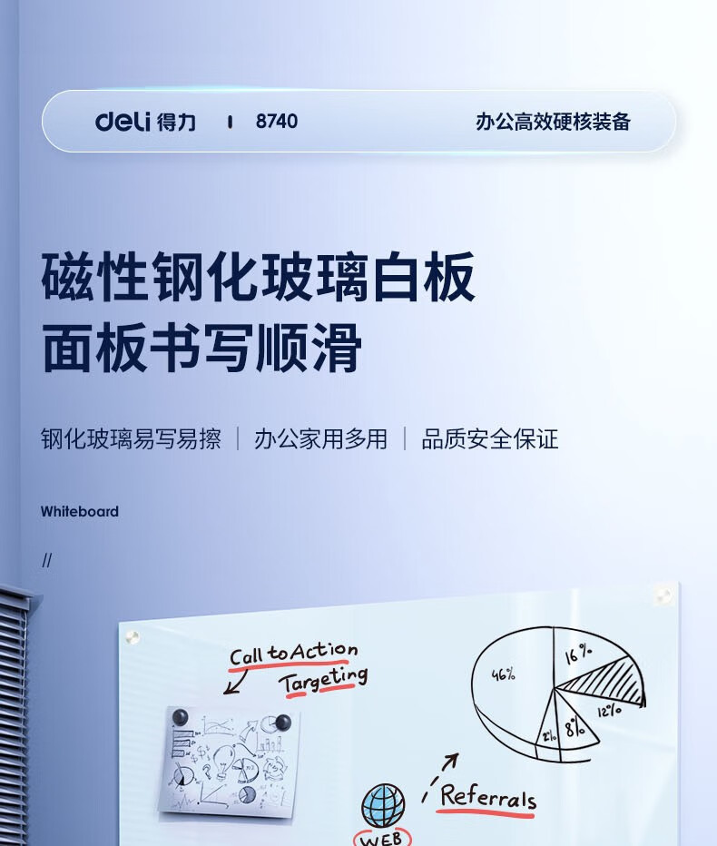 得力8738_H型架磁性玻璃白板900*1200mm(灰色)