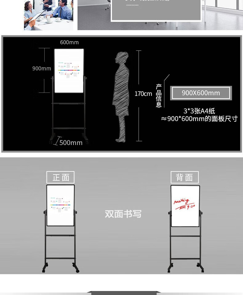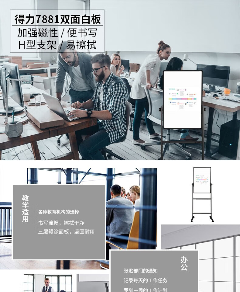 得力7881H型雙面白板600*900(黑色)