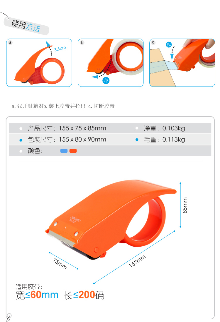 得力802封箱器≤60mm(紅)