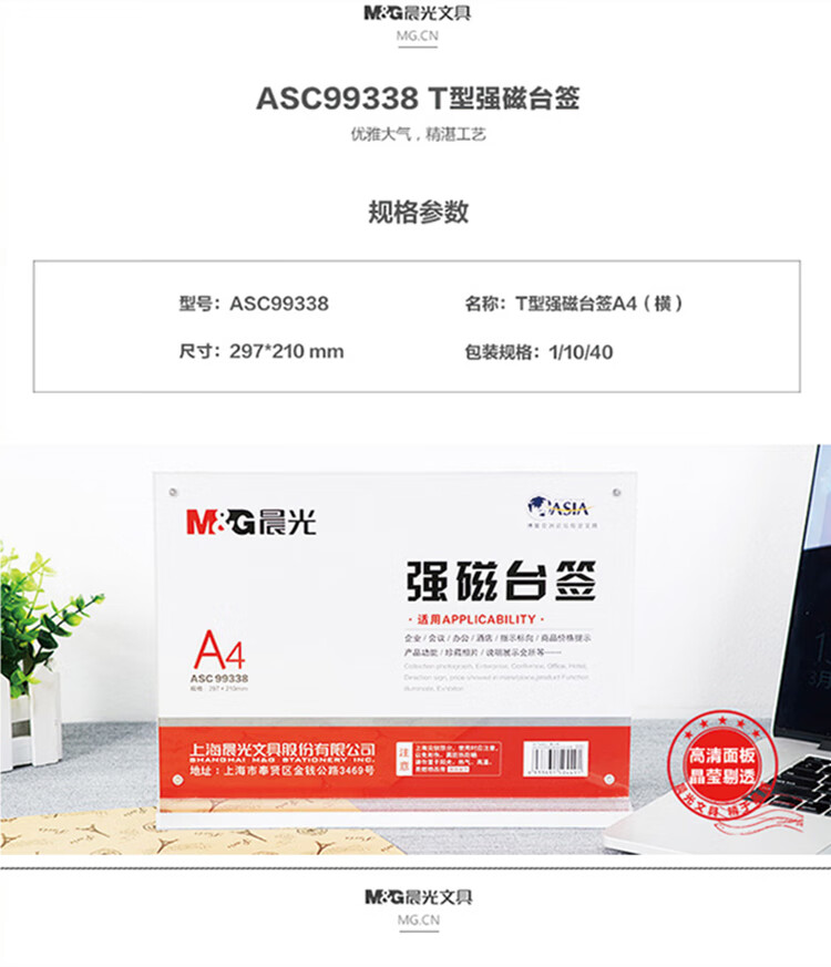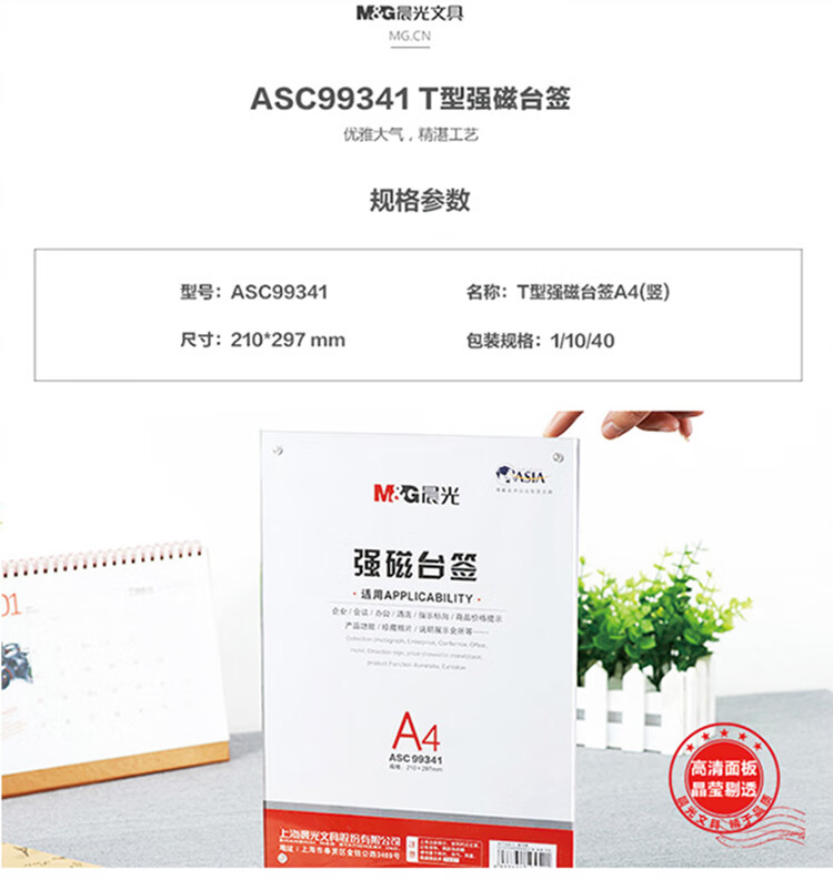 晨光T型強磁臺簽A4(豎)ASC99341