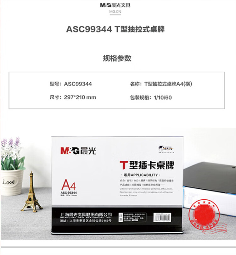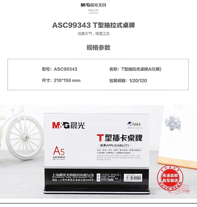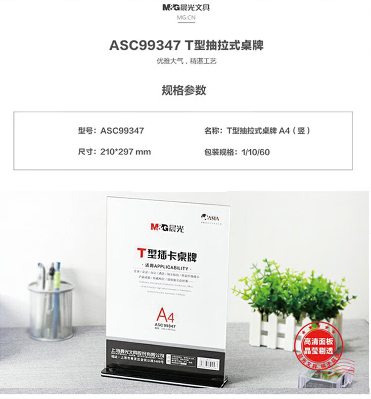 晨光ASC99347會議桌牌T型A4(豎)210mm×297mm晨光ASC99347會議桌牌T型A4(豎)210mm×297mm