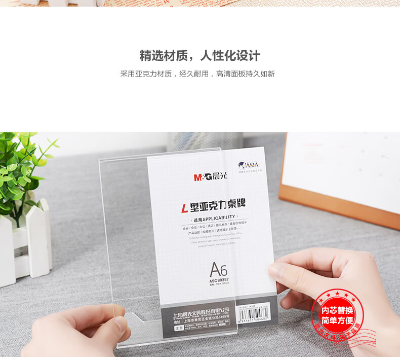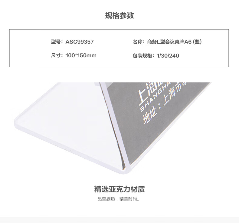 適用類型 : 晨光ASC99357會(huì)議桌牌L型A6(豎)100mm×150mm