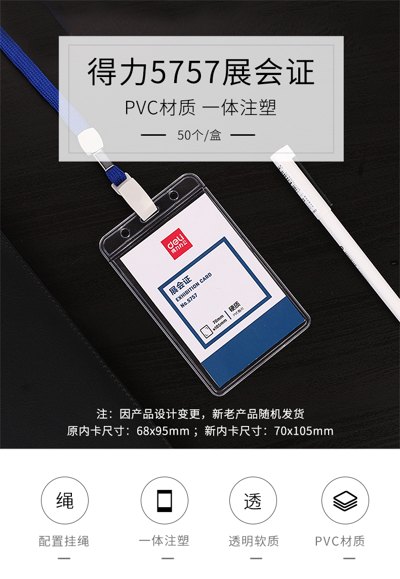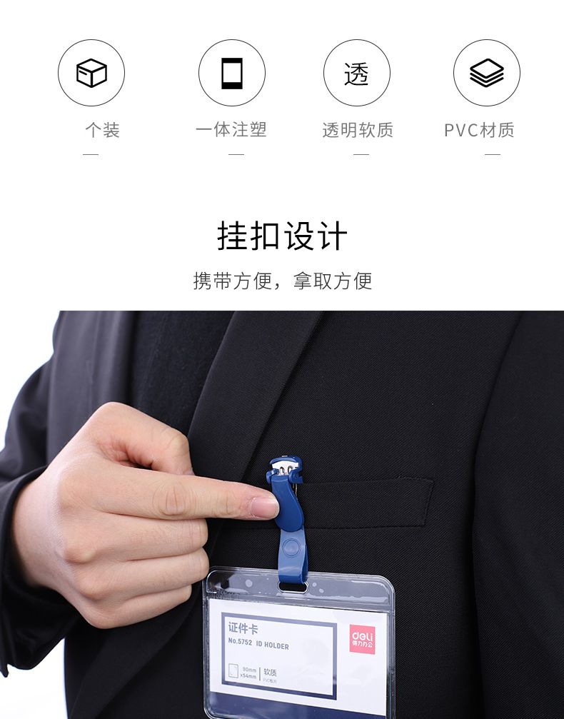 得力PZ02軟質PVC證件卡-豎款(透明)(48個/盒)