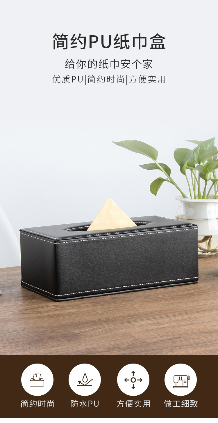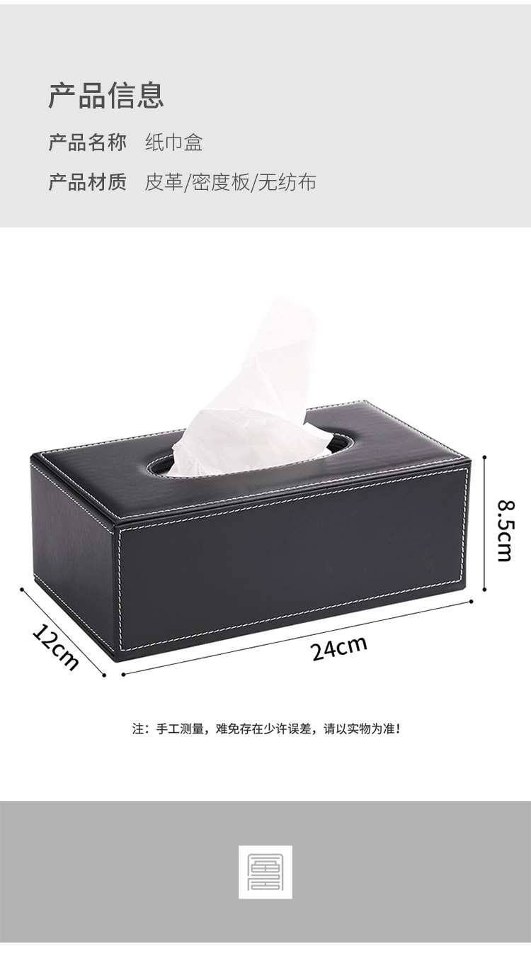 黑色皮面大號抽紙盒24*12*8.5cm