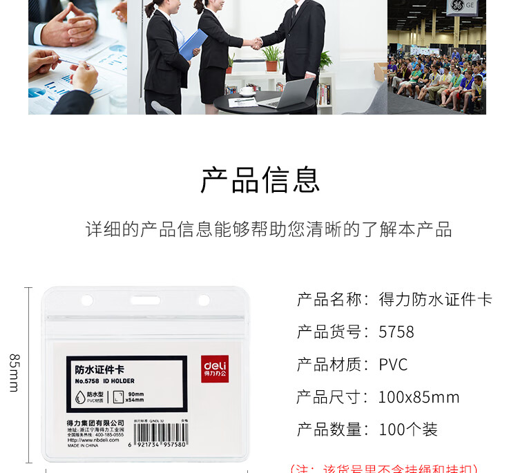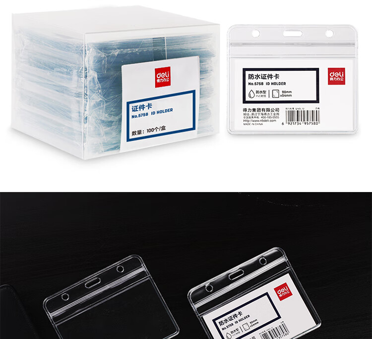 得力PZ02軟質PVC證件卡-豎款(透明)(48個/盒)