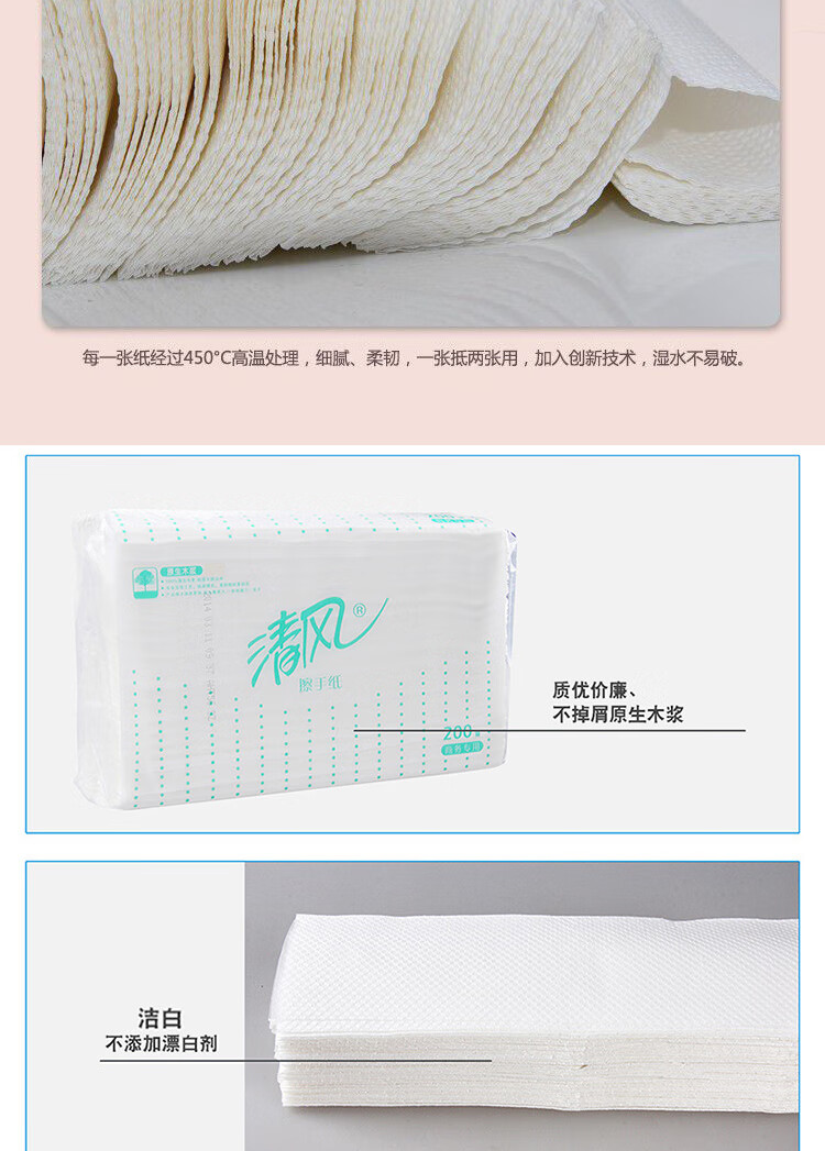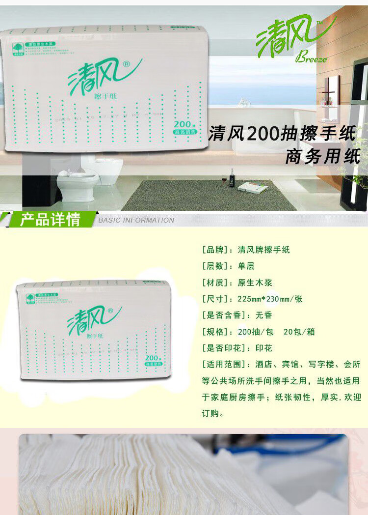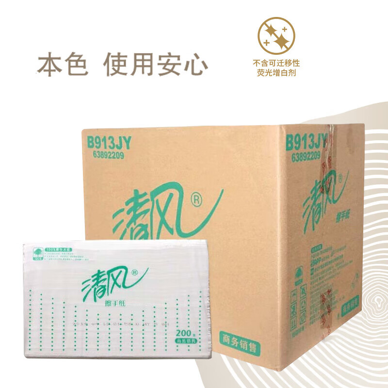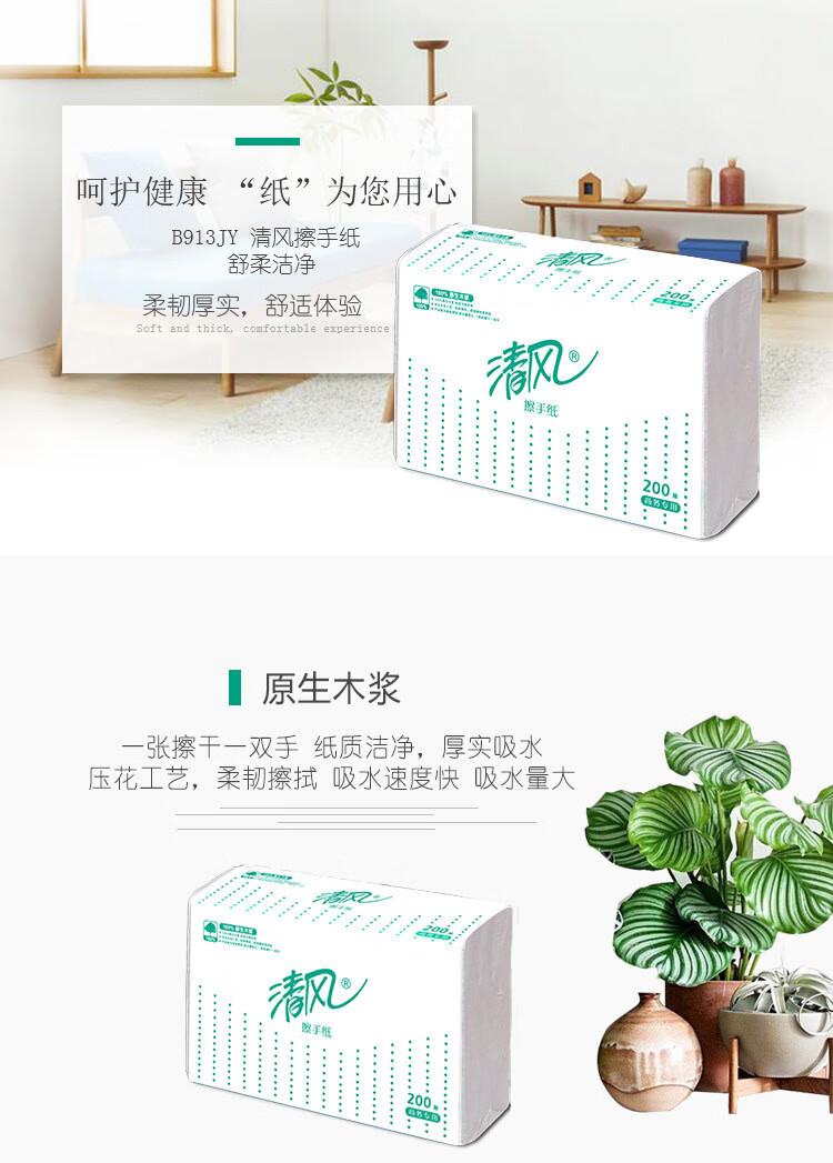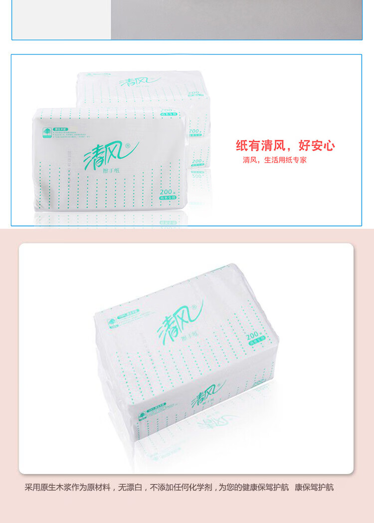 清風舒柔純品1層200張/包*1*20擦手紙B913AS