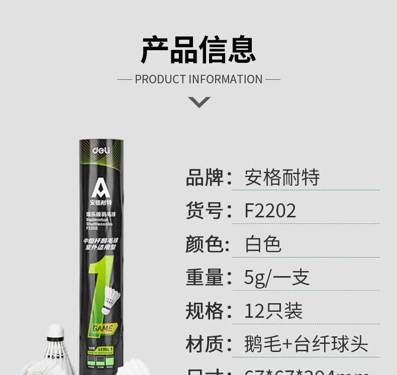安格耐特F2202羽毛球(白色)(12個/筒)