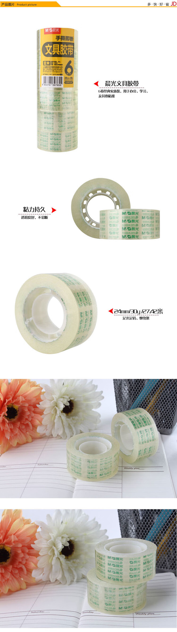 晨光文具膠帶24mm*30y(6卷)AJD97325